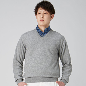 Vセーター カシミヤ【藍墨茶:Col.97】