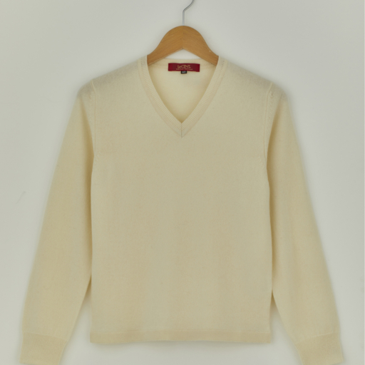 Vセーター カシミヤ【胡粉色:Col.90】