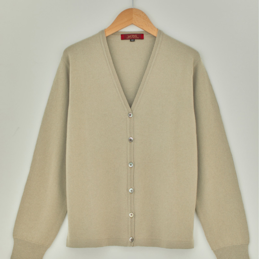 Vカーディガン カシミヤ【亜麻:Col.11】