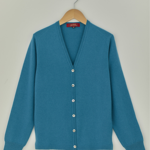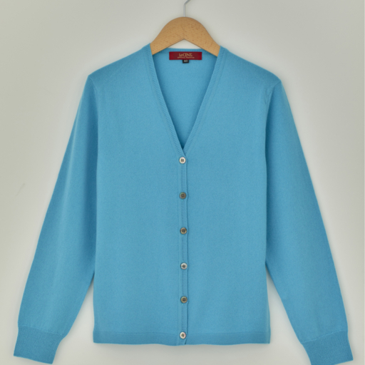Vカーディガン カシミヤ【露草:Col.44】