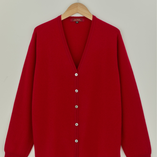 Vカーディガン カシミヤ【朱:Col.36】