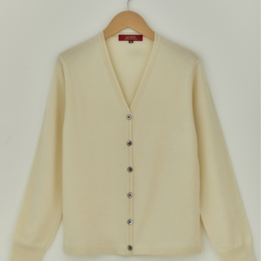 Vカーディガン カシミヤ【胡粉色:Col.90】