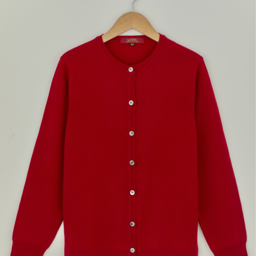 クルーカーディガン カシミヤ【朱:Col.36】