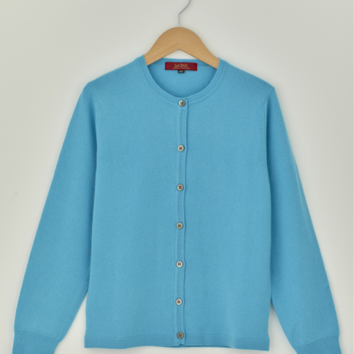クルーカーディガン カシミヤ【露草:Col.44】