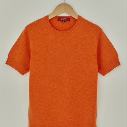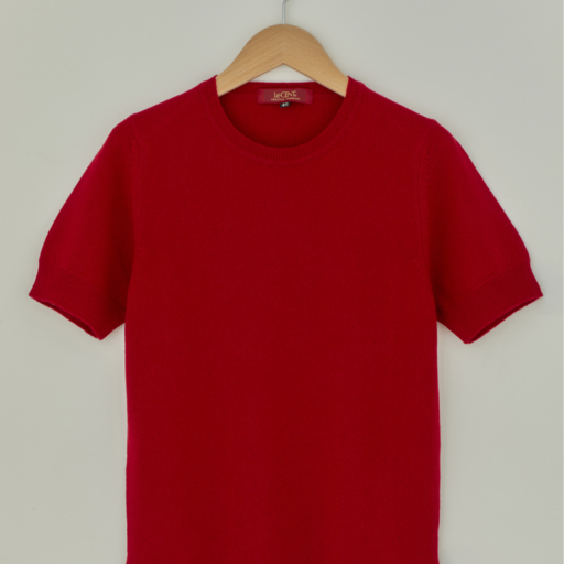 クルー半袖セーター カシミヤ【朱:Col.36】