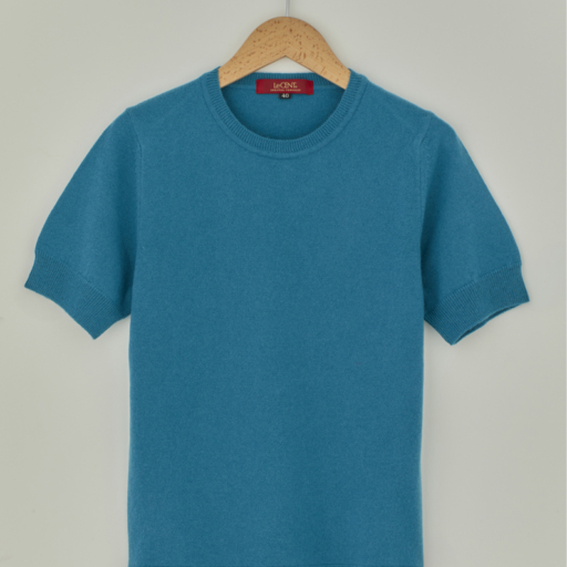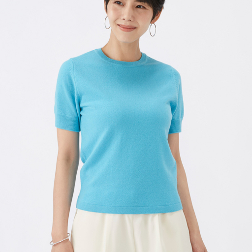 クルー半袖セーター カシミヤ【露草:Col.44】