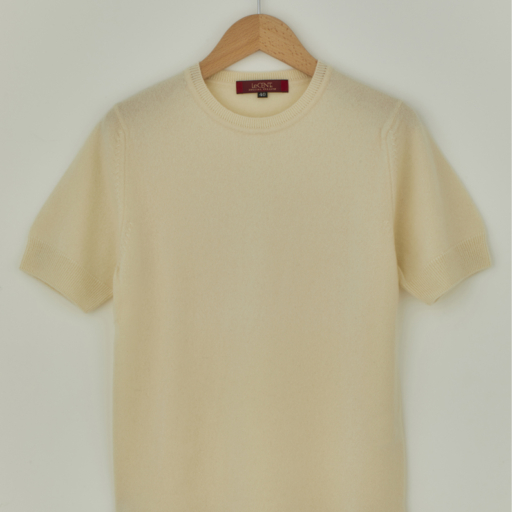 クルー半袖セーター カシミヤ【胡粉色:Col.90】
