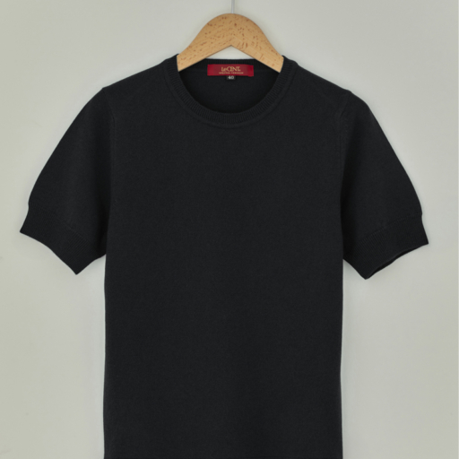 クルー半袖セーター カシミヤ【漆黒:Col.99】