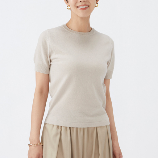 クルー半袖セーター カシミヤ【亜麻:Col.11】