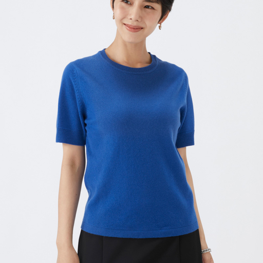 クルー半袖セーター カシミヤ【紺瑠璃:Col.45】