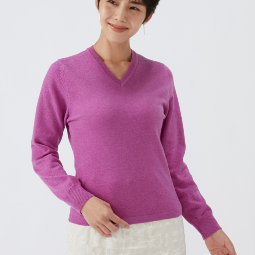 Vセーター カシミヤ【京紫:Col.74】