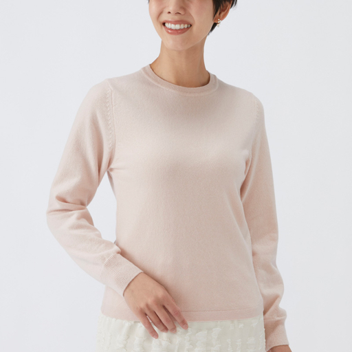 クルーセーター カシミヤ【胡粉色:Col.90】