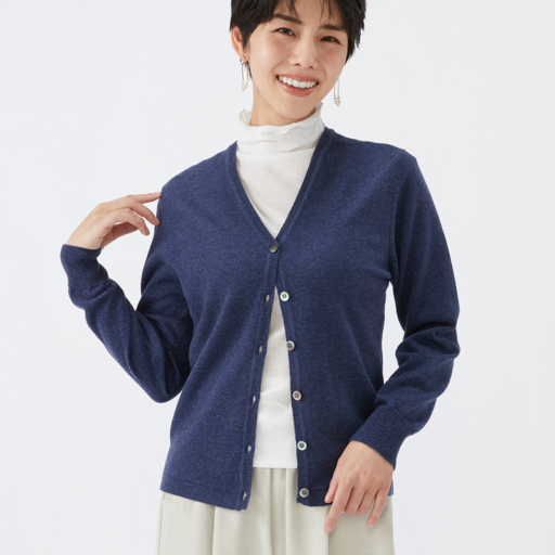 Vカーディガン カシミヤ【濃藍:Col.48】