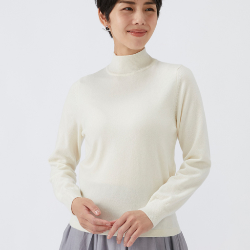 ハイネック カシミヤ【胡粉色:Col.90】