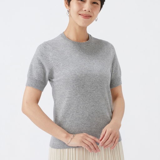 クルー半袖セーター カシミヤ【銀鼠:Col.93】