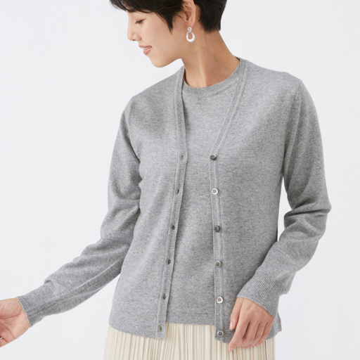 Vカーディガン カシミヤ【銀鼠:Col.93】