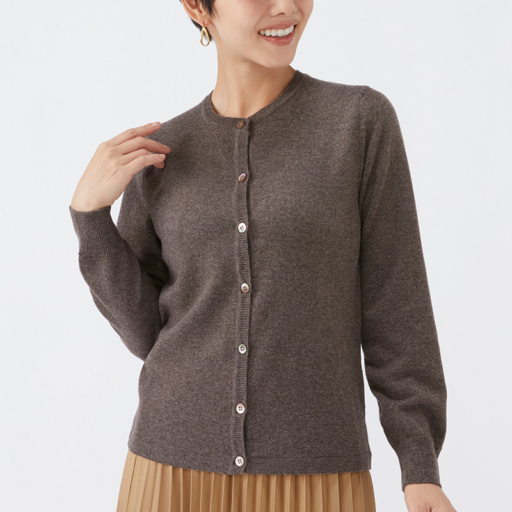 クルーカーディガン カシミヤ【観世茶:Col.17】
