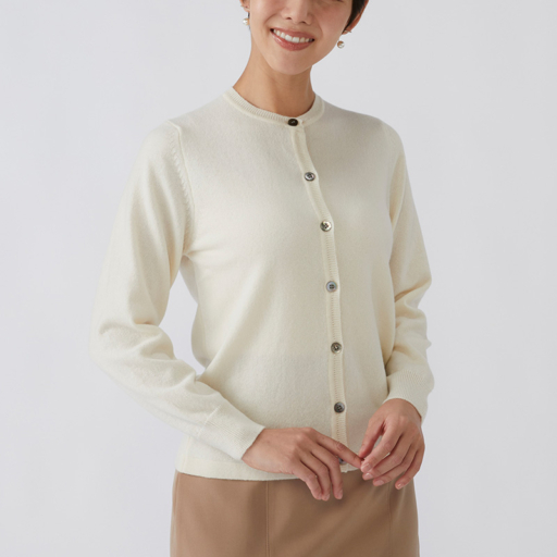 クルーカーディガン カシミヤ【胡粉色:Col.90】