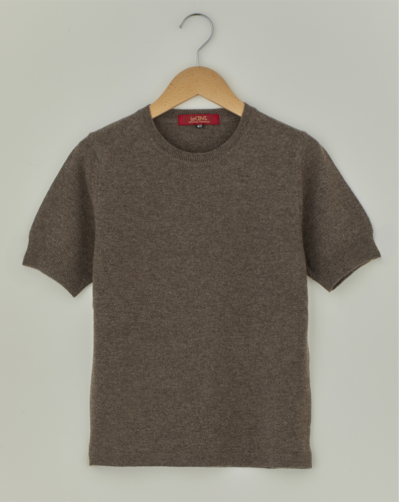 クルー半袖セーター カシミヤ【観世茶:Col.17】