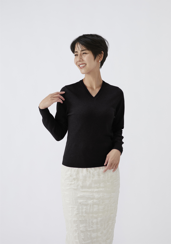 こだわり抜いたカシミヤ糸に合わせ、ゲージ、度目、番手の最適なバランスを最新のコンピューターで設計し、制御。高機能の編み機でゆっくり丁寧に編み上げ、ピリングが起きにくく、型くずれしにくいニットを完成させます。