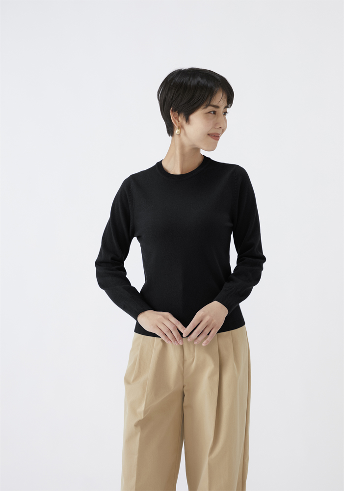 クルーセーター カシミヤ【濃藍:Col.48】
