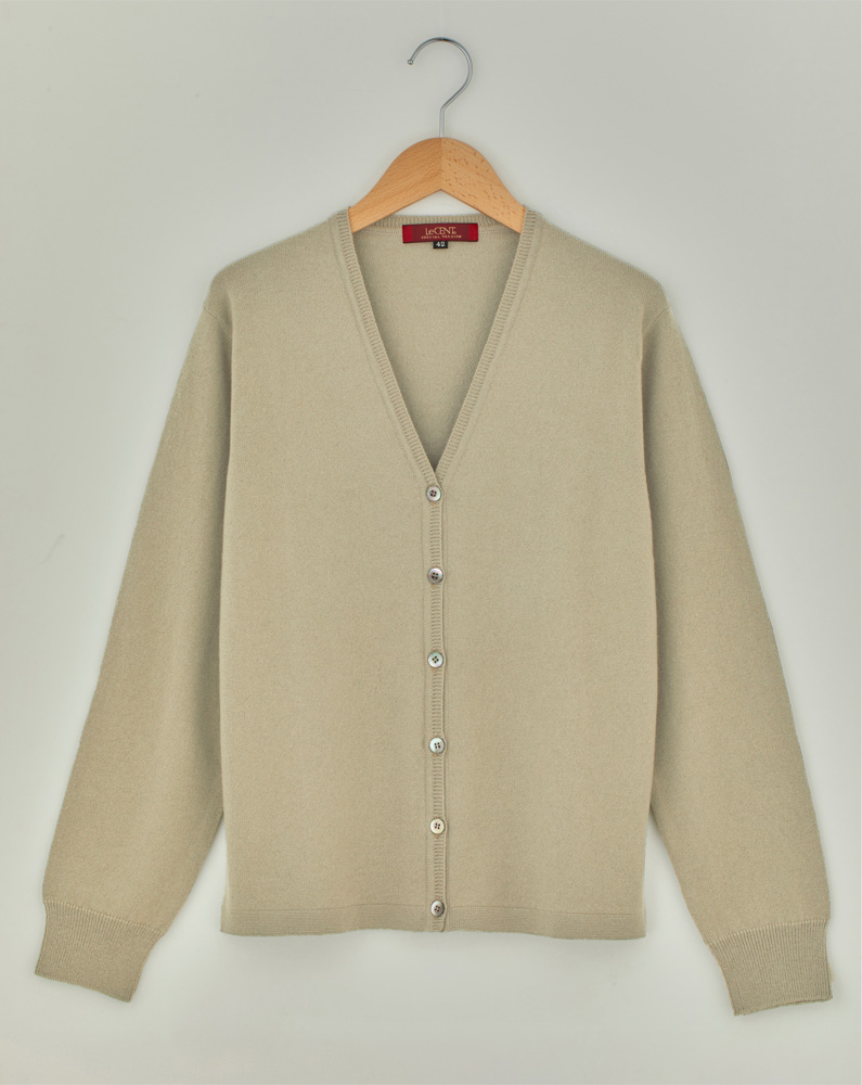 Vカーディガン カシミヤ【亜麻:Col.11】
