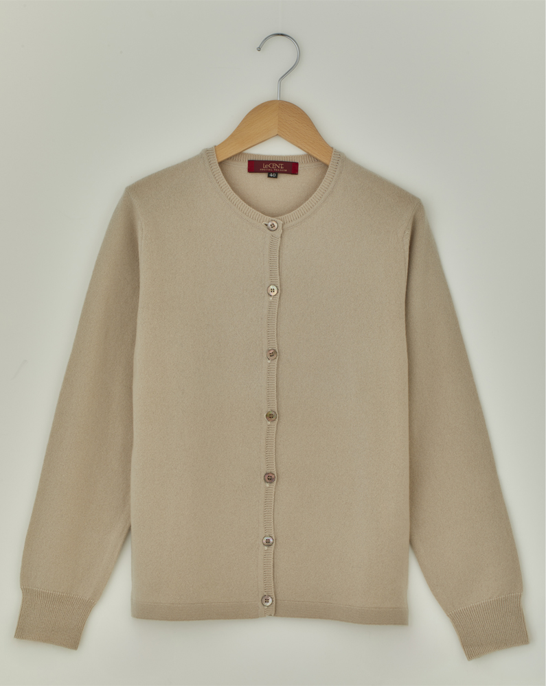 クルーカーディガン カシミヤ【亜麻:Col.11】