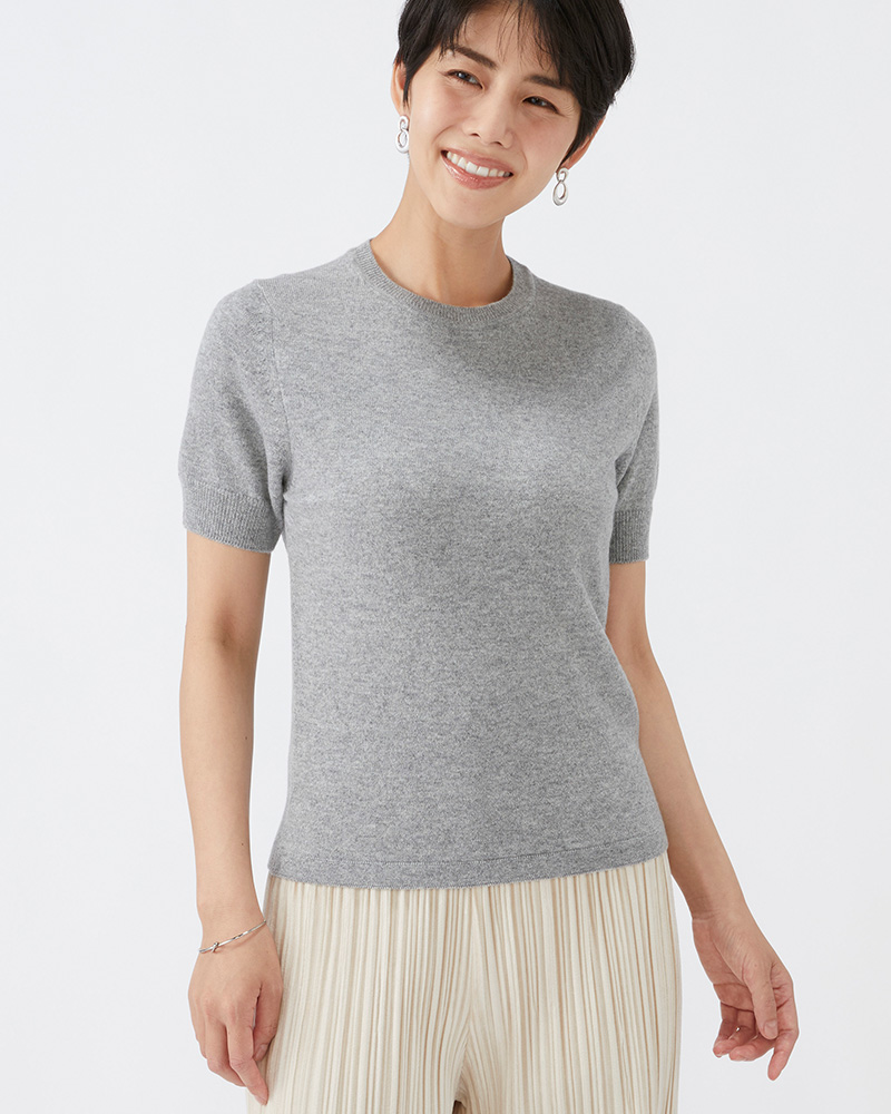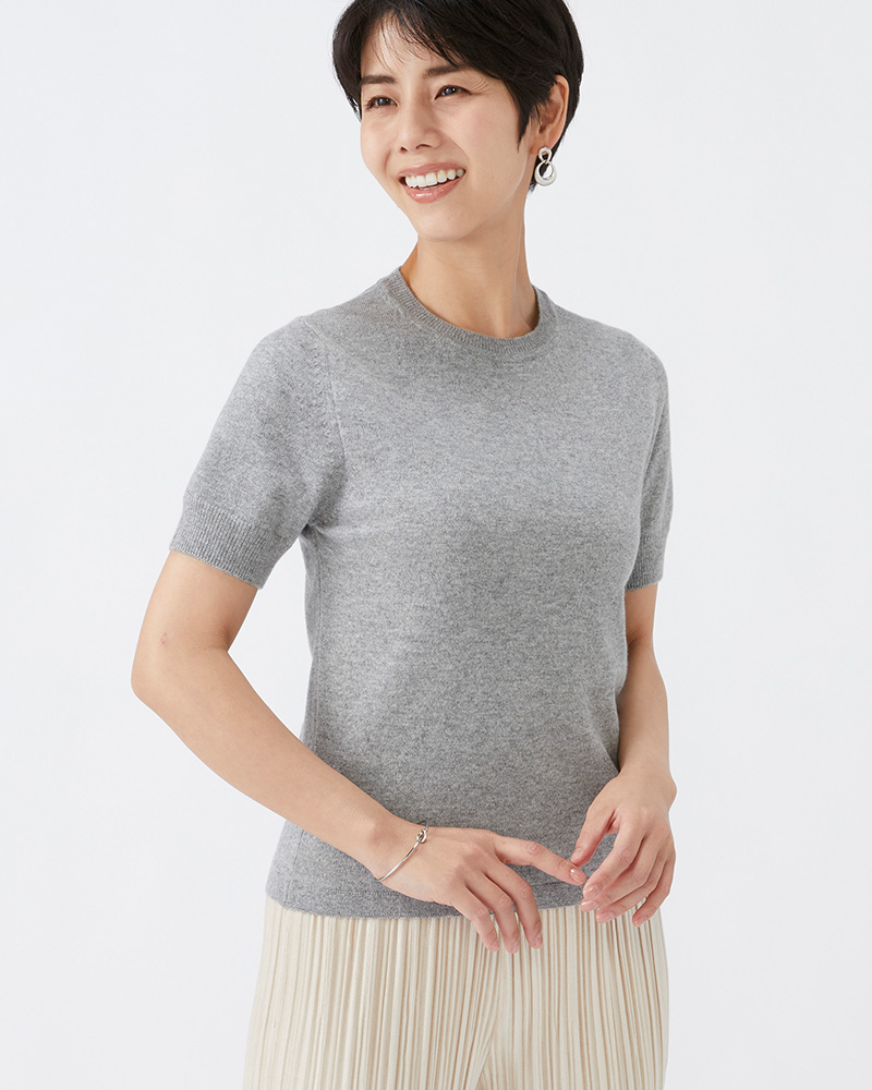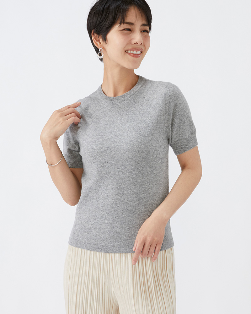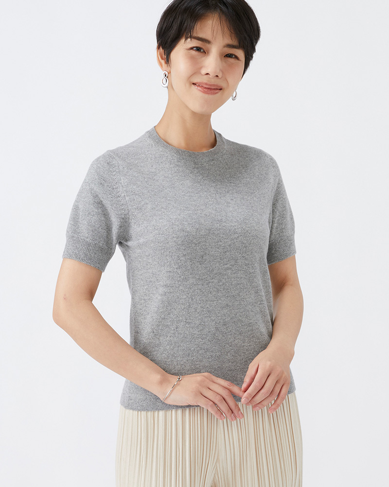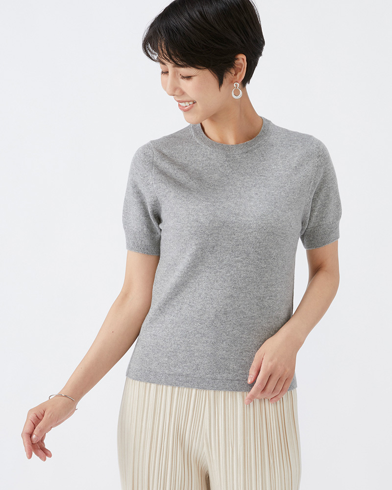 クルー半袖セーター カシミヤ【銀鼠:Col.93】