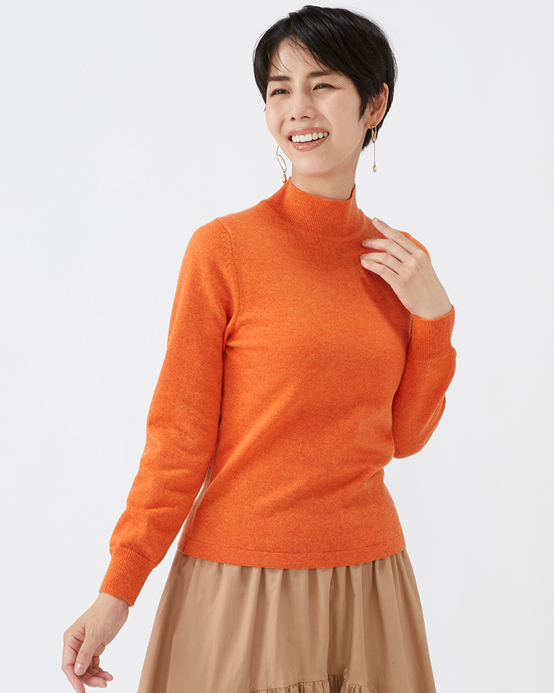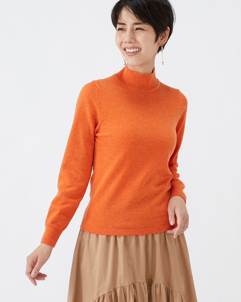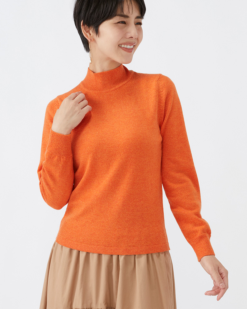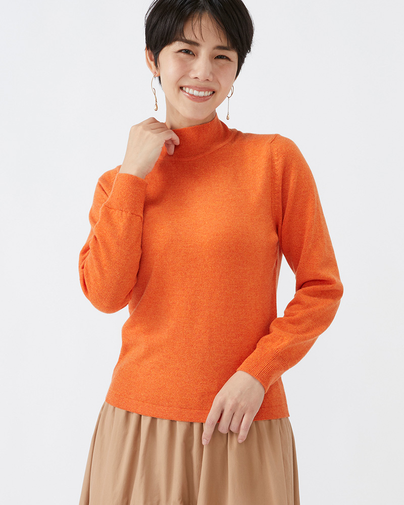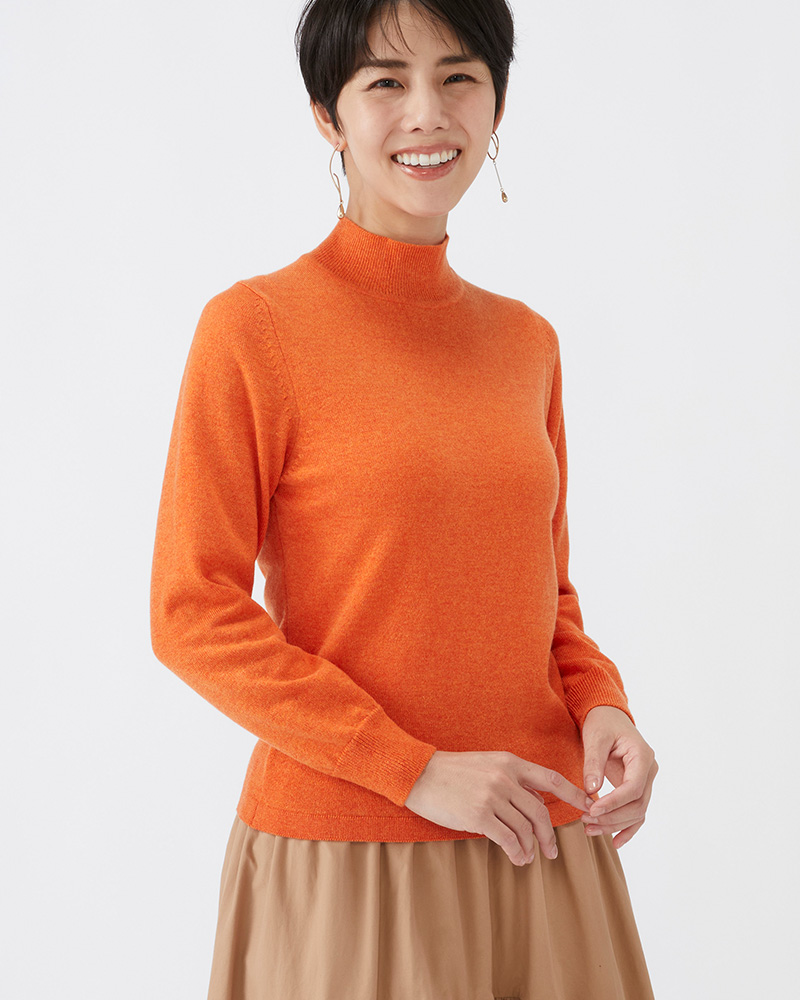 こだわり抜いたカシミヤ糸に合わせ、ゲージ、度目、番手の最適なバランスを最新のコンピューターで設計し、制御。高機能の編み機でゆっくり丁寧に編み上げ、ピリングが起きにくく、型くずれしにくいニットを完成させます。