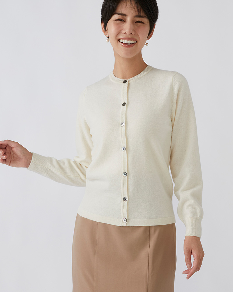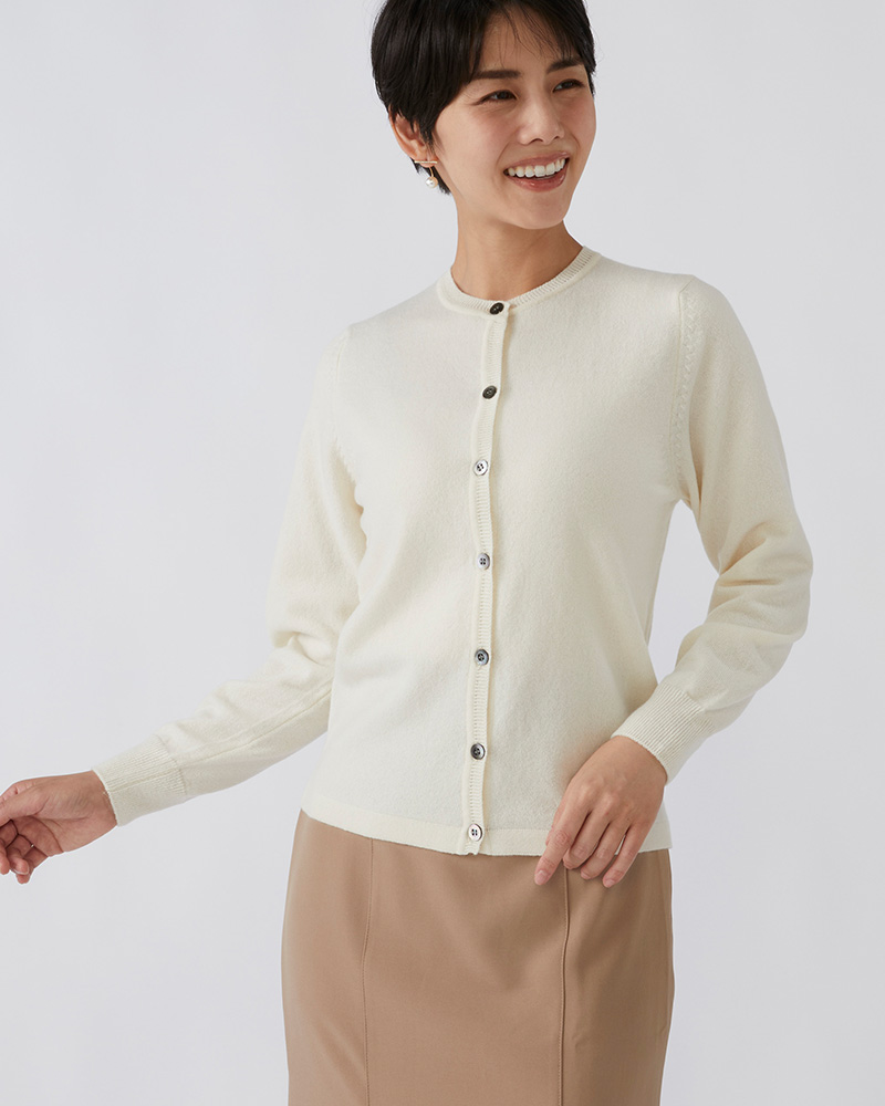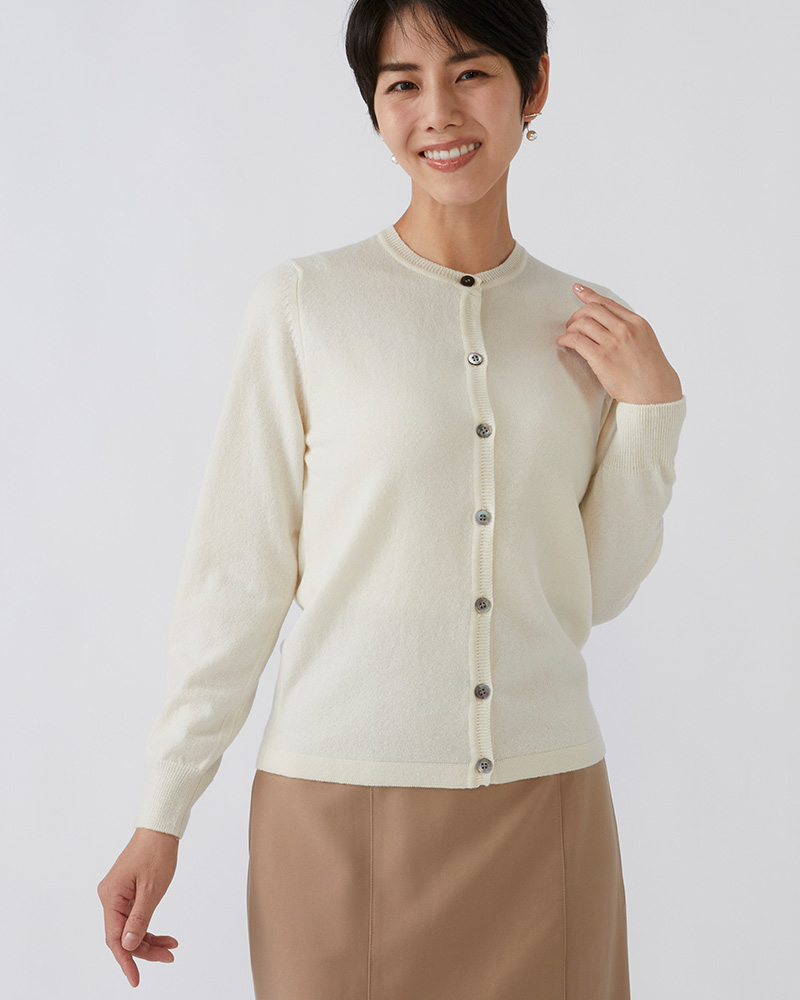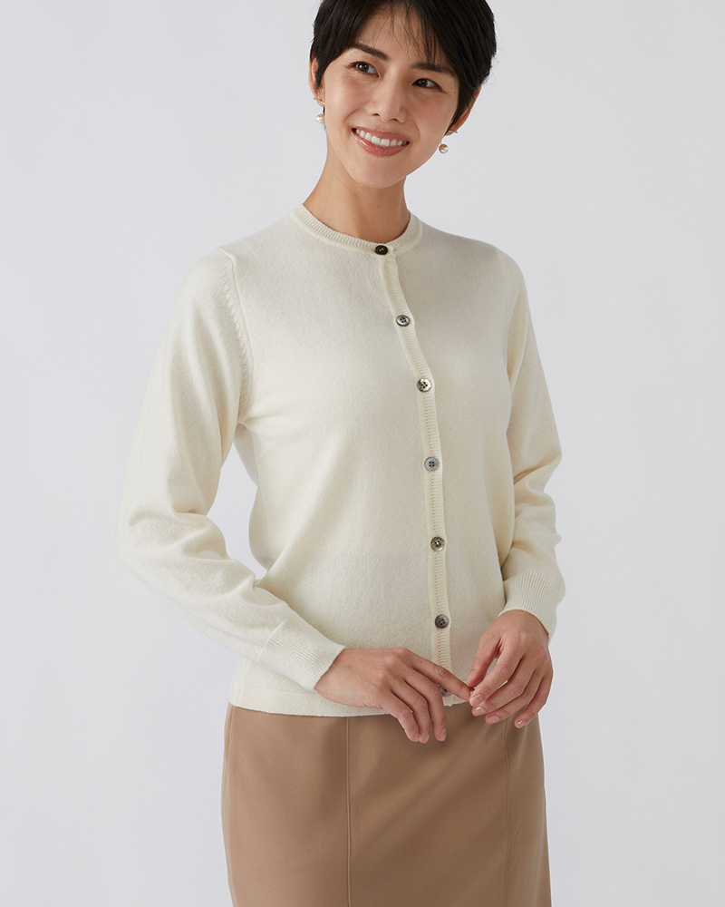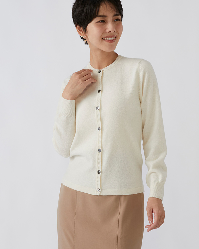 クルーカーディガン カシミヤ【胡粉色:Col.90】