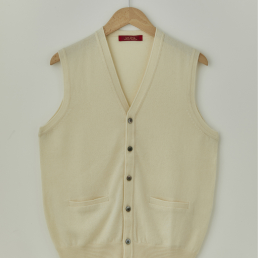 前割ベスト カシミヤ【胡粉色:Col.90】